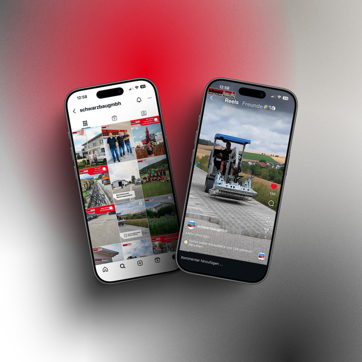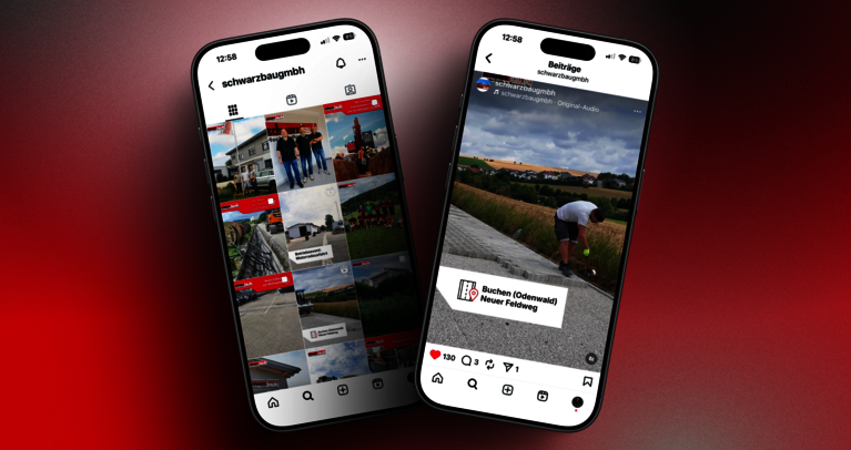 Schwarz Bau hat ein starkes Team, großes handwerkliches Können und Mitarbeitende, die stolz auf ihre Arbeit sind und anderen zeigen wollen, wo sie arbeiten. Online war davon aber wenig zu sehen: Die Social Media Kanäle wirkten unübersichtlich, der Look war uneinheitlich und Inhalte erschienen unregelmäßig. Likes, Reichweite und Engagement blieben weit hinter dem Potenzial.